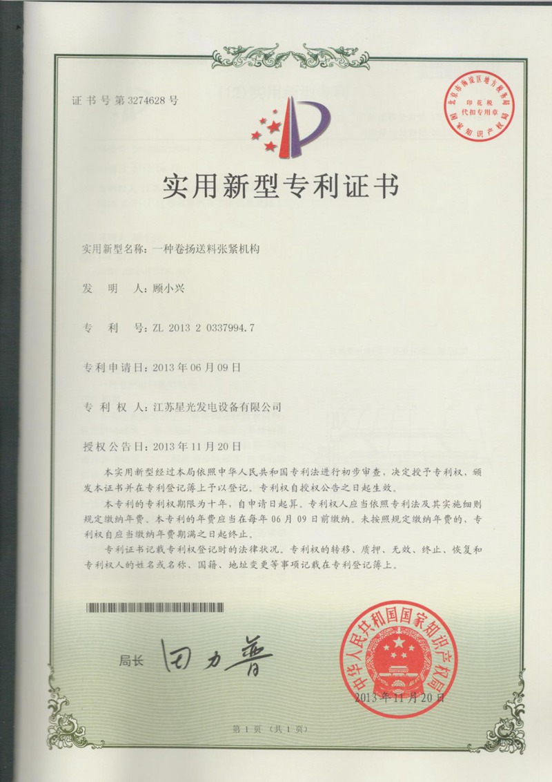 一種卷揚(yáng)送料張緊機(jī)構(gòu)-專利證書